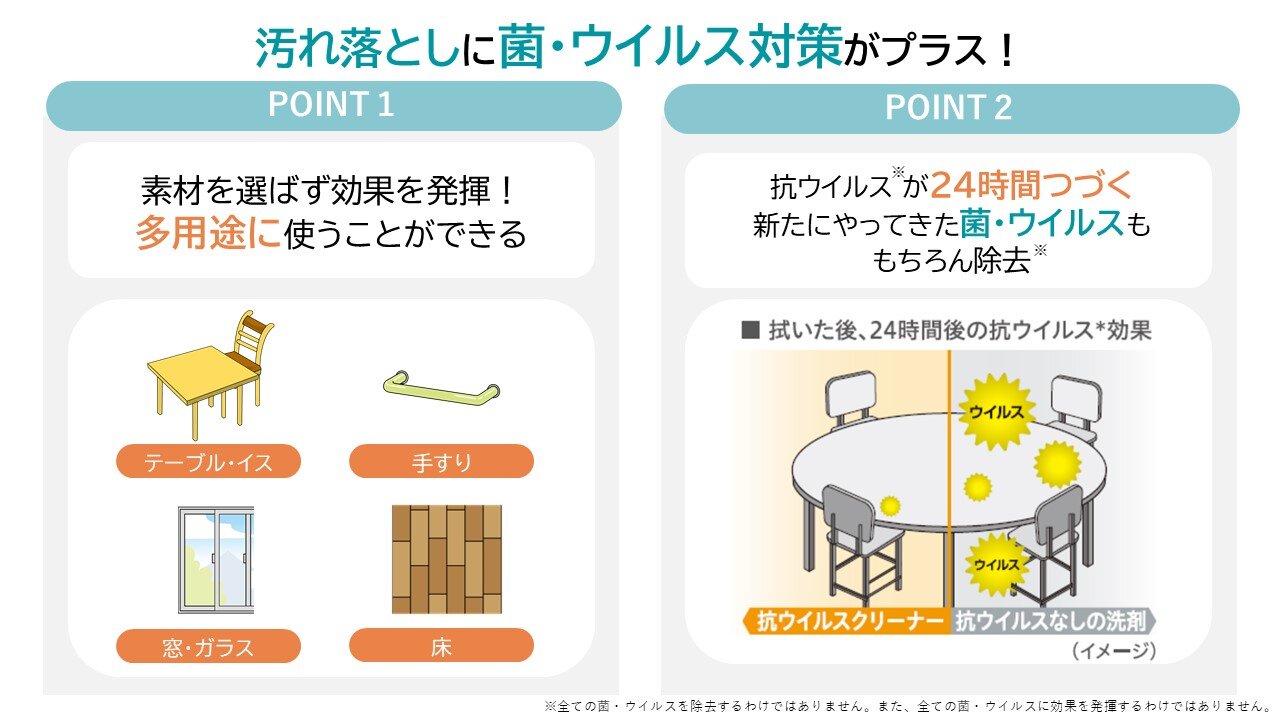 抗ウイルスコート:拭いた後に付着するウイルスを減少させる。