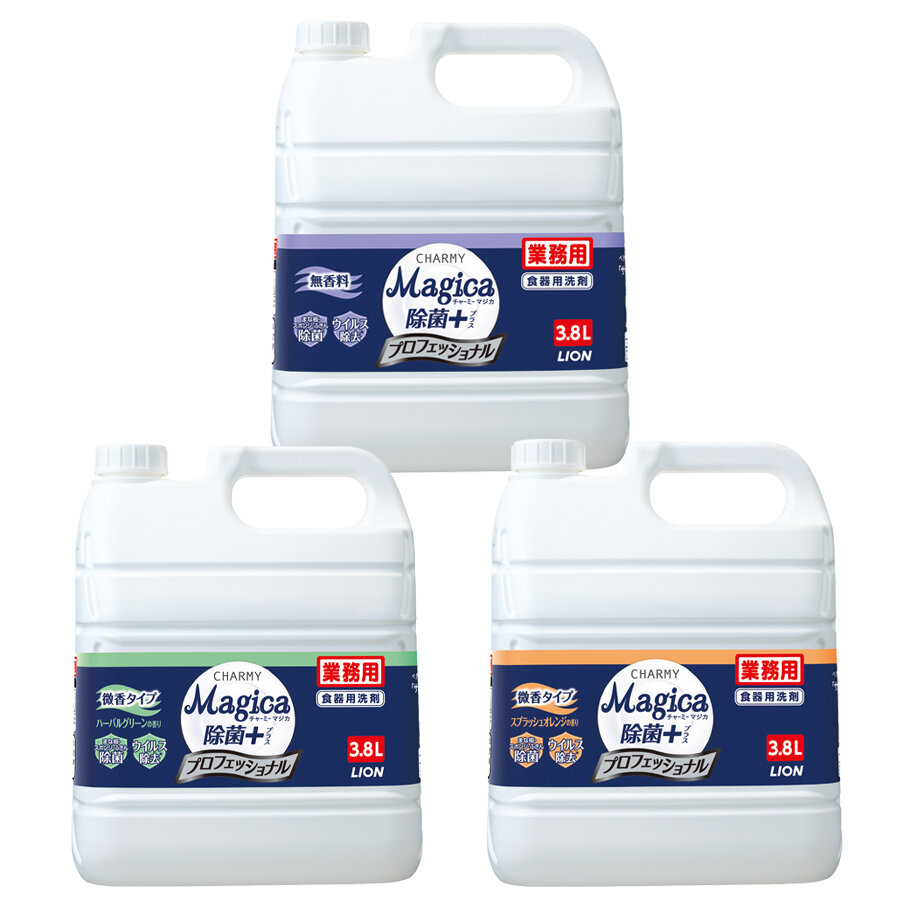 業務用のニーズに対応した、プロ用設計のマジカ。手ごわい油汚れも従来より細かくナノレベルまで分解。洗いはじめからすすぎ終わりまで、水のように「サラサラ落とせて」手早く食器を洗い上げます。スポンジ除菌だけでなく、まな板やふきんの除菌もできます。(すべての菌を除菌するわけではありません)選べる3つの香りのタイプ。